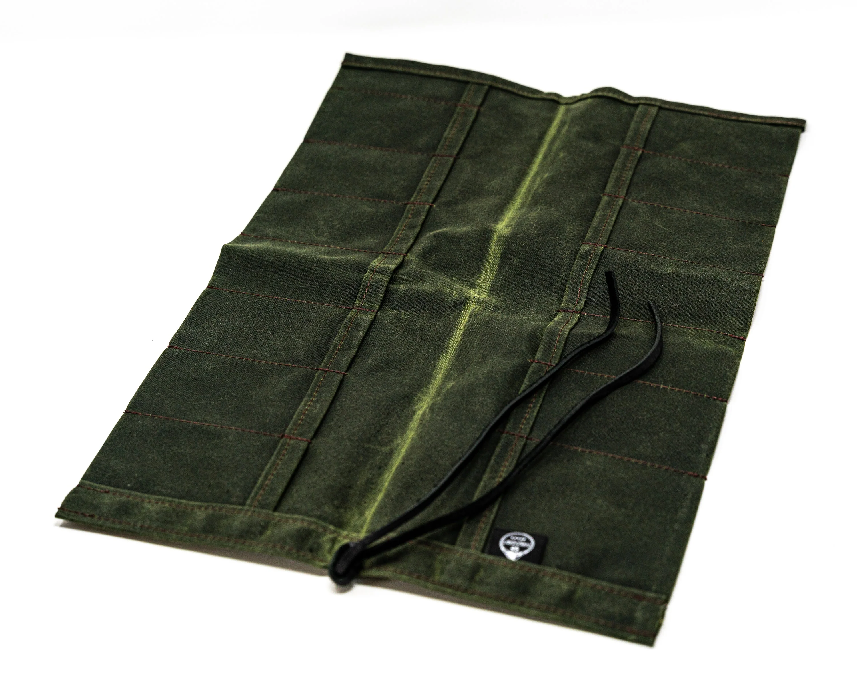 Handmade in the USA, this rugged maple waxed canvas roll offers ample storage with 15 staggered pockets for tools, knives, and daily essentials. Available in OD Green or Field Tan, each pocket is offset from the one opposite to maximize space and functionality. Built to last with heavy-duty thread, reinforced stitching at stress points, and finished with a Kodiak leather lace that adds a touch of classic utility. Tough, good-looking, and endlessly useful—this is the kind of gear roll you’ll use every day and wonder how you ever lived without it.