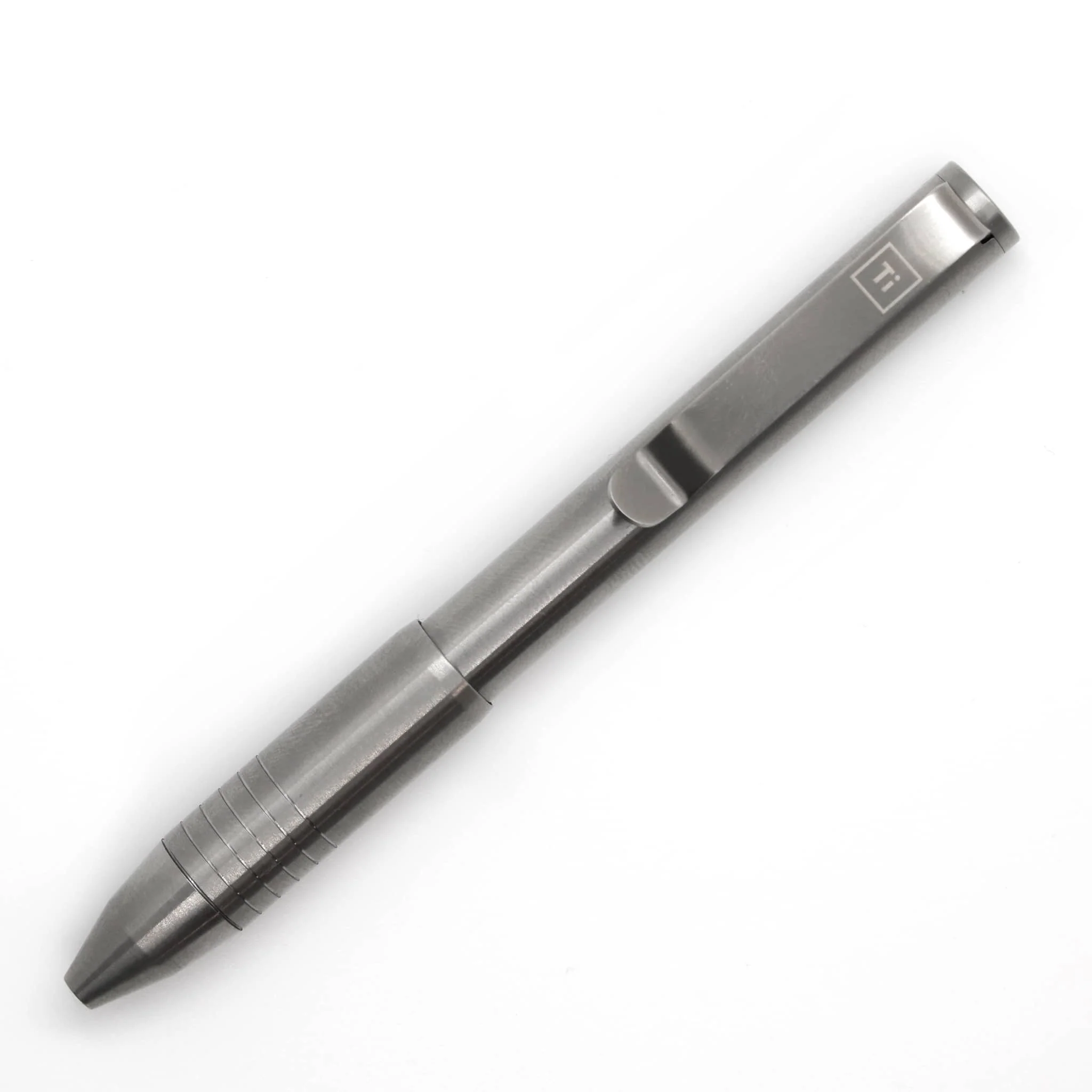 • Grade 5 Titanium : Pen body, pen tip, grip, and all internal parts (no plastic parts) • Grade 4 Titanium : Pocket Clip (for proper tension) • Industrial Strength Silicone : O-rings that go on the body of the pen